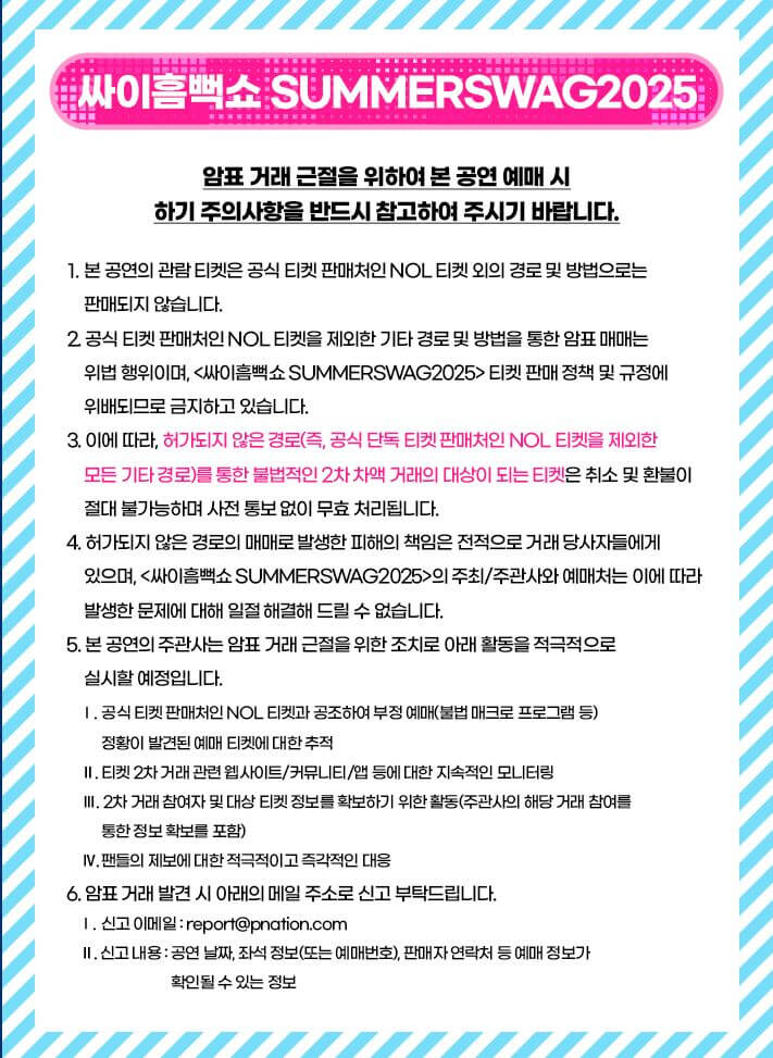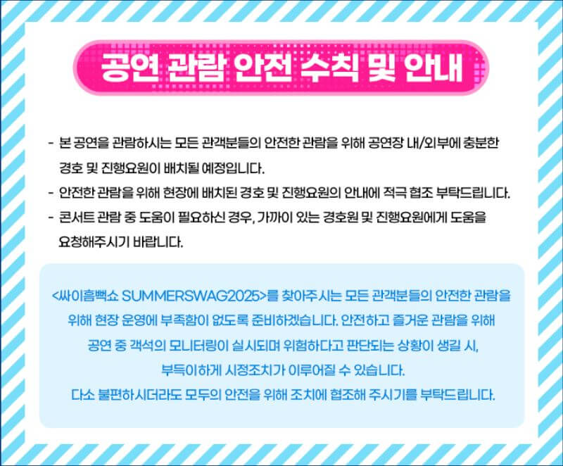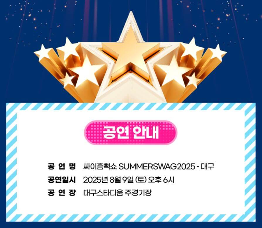 가수 싸이의 대표 여름 공연 브랜드 ‘싸이 흠뻑쇼 SUMMERSWAG 2025’가 오는 8월 9일(토) 오후 6시, 대구스타디움 주경기장에서 개최됩니다.