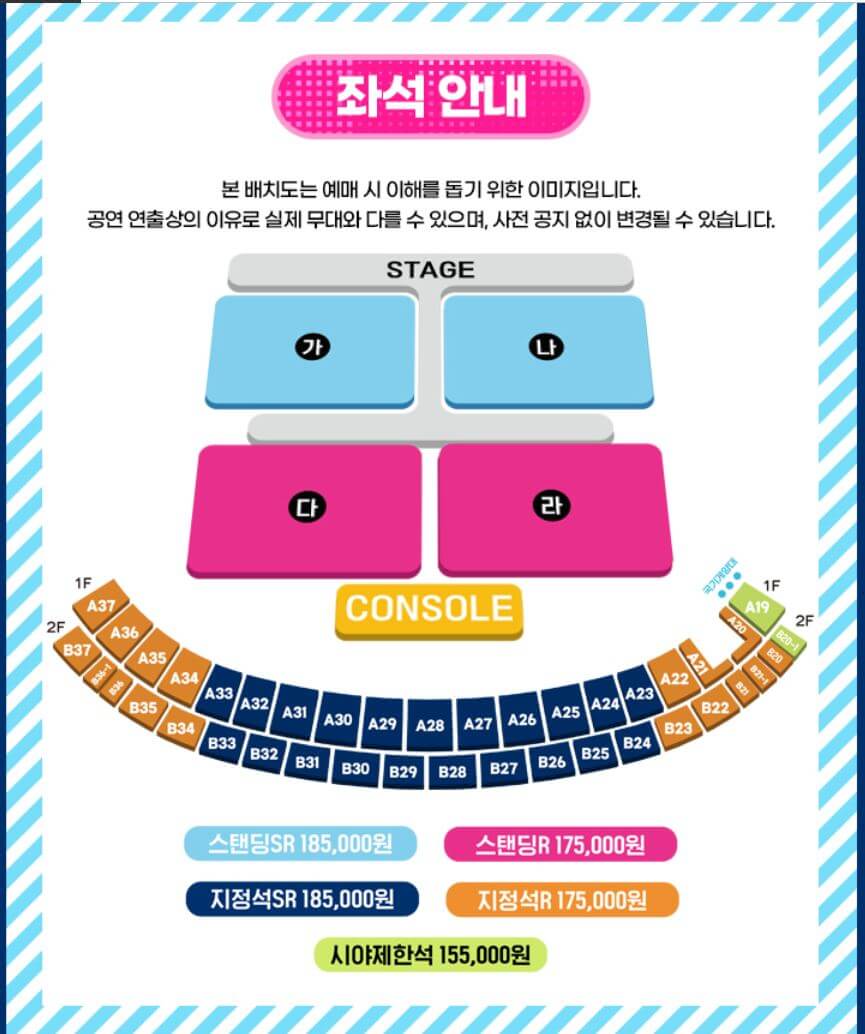 좌석은 스탠딩 R 및 지정석 R(154,000원), 스탠딩 SR 및 지정석 SR(165,000원) 등으로 구성되며, 지역에 따라 일부 SR석은 185,000원으로 책정되어 있습니다. 이번 대구 공연은 야외에서 진행되며, 공연 시작 약 2시간 전부터 입장이 개시될 예정입니다.